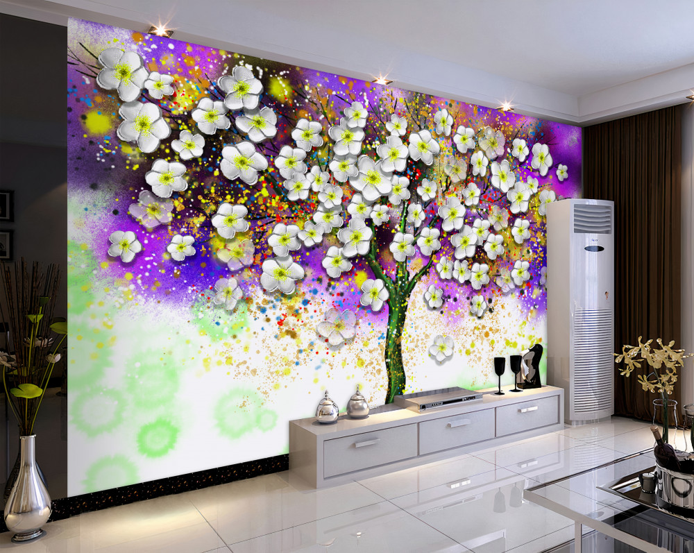 Fotomurales Árbol de flores blancos como nieve (artículo pb10008 ) de la categoría Fotomurales Flores 3d