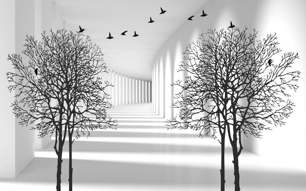 Fotomurales Árboles caídos en otoño y pájaros en vuelo (artículo a90849 ) de la categoría Fotomurales Túnel 3d