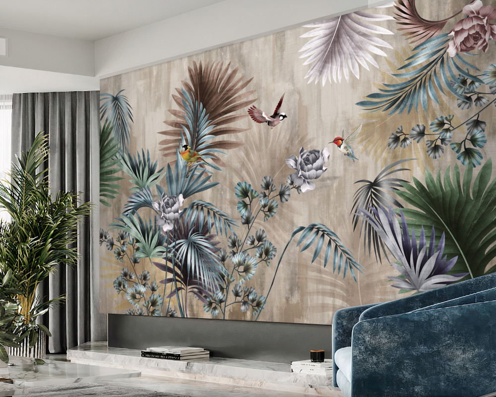 Fotomurales Aves entre la vegetación tropical
