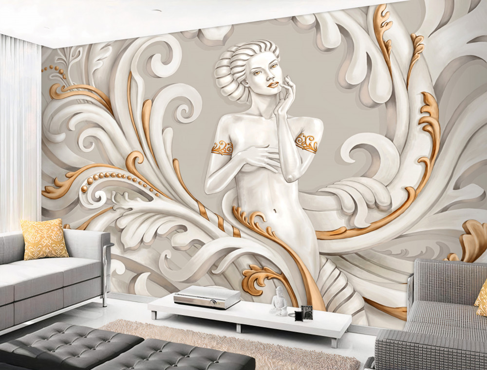 Fotomurales Chica blanca desnuda y rizos blancos y rosas (artículo a93688 ) de la categoría Fotomurales 3D