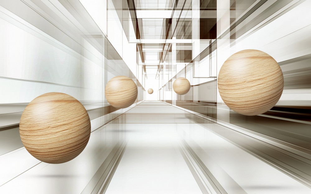 Fotomurales Esferas de madera en un túnel óptico (artículo a90919 ) de la categoría Fotomurales Túnel 3d