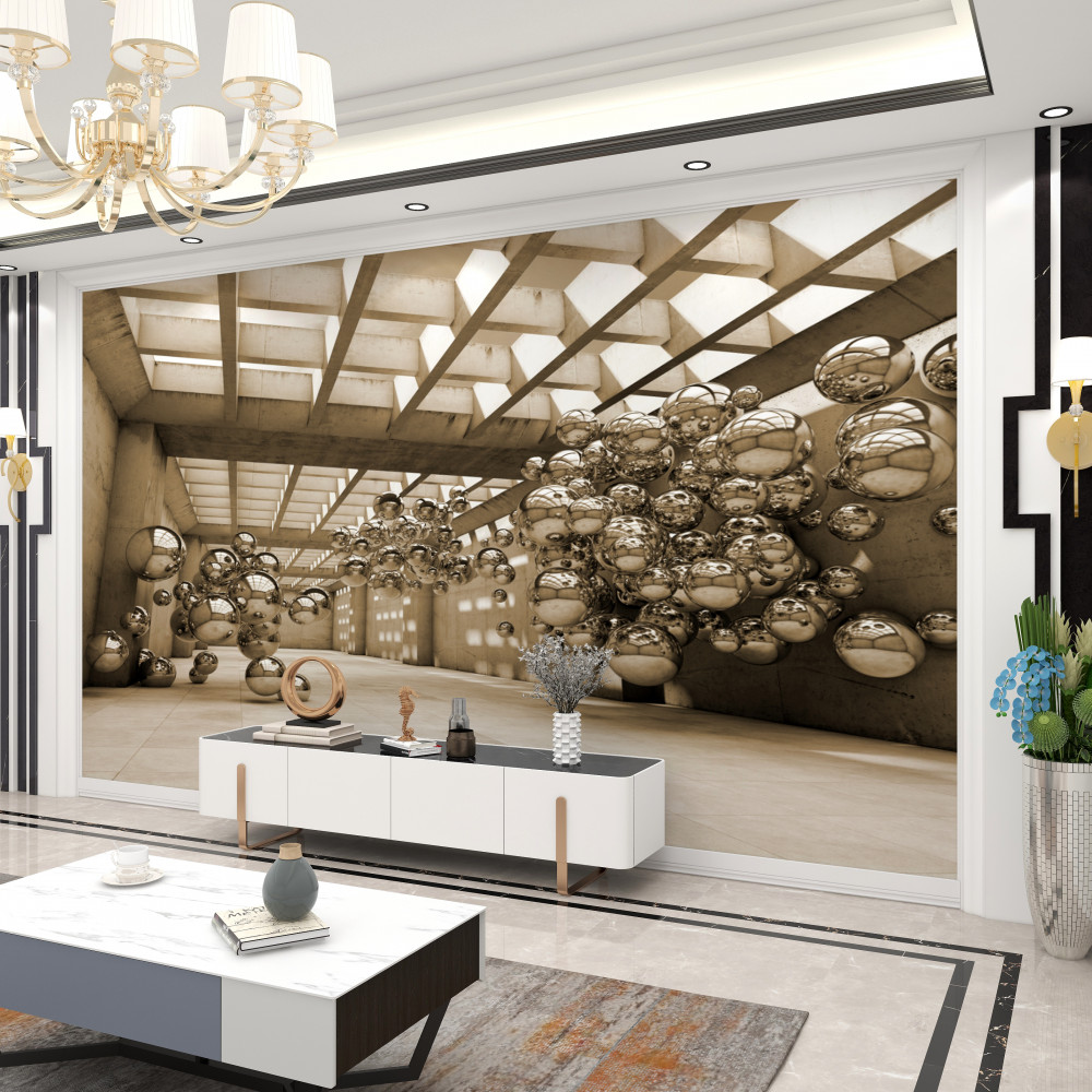 Fotomurales Habitación con esferas de bronce (artículo a92582 ) de la categoría Fotomurales Túnel 3d