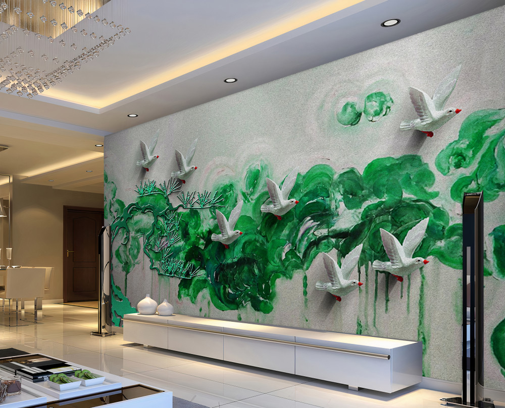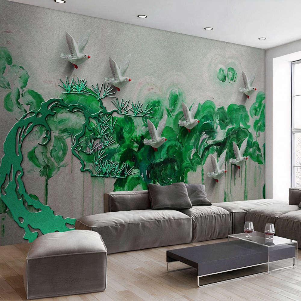 Fotomurales Hojas verdes y palomas blancas (artículo pb7805 ) de la categoría Fotomurales Popular