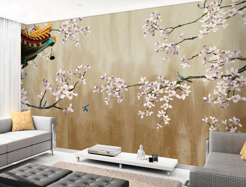 Fotomurales Los pájaros se regocijan en las flores que florecen (artículo a91601 ) de la categoría Fotomurales Flores 3d