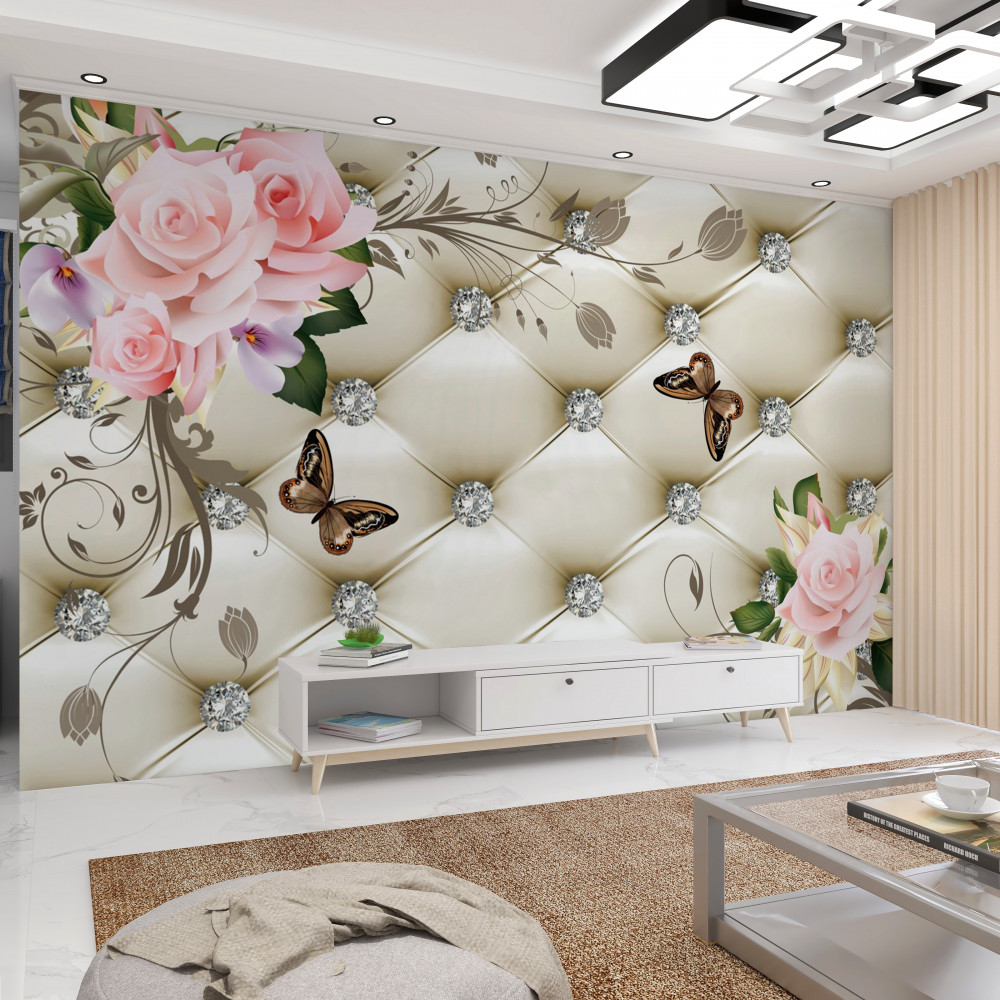 Fotomurales Mariposas en rosas rosadas y decoraciones de tela