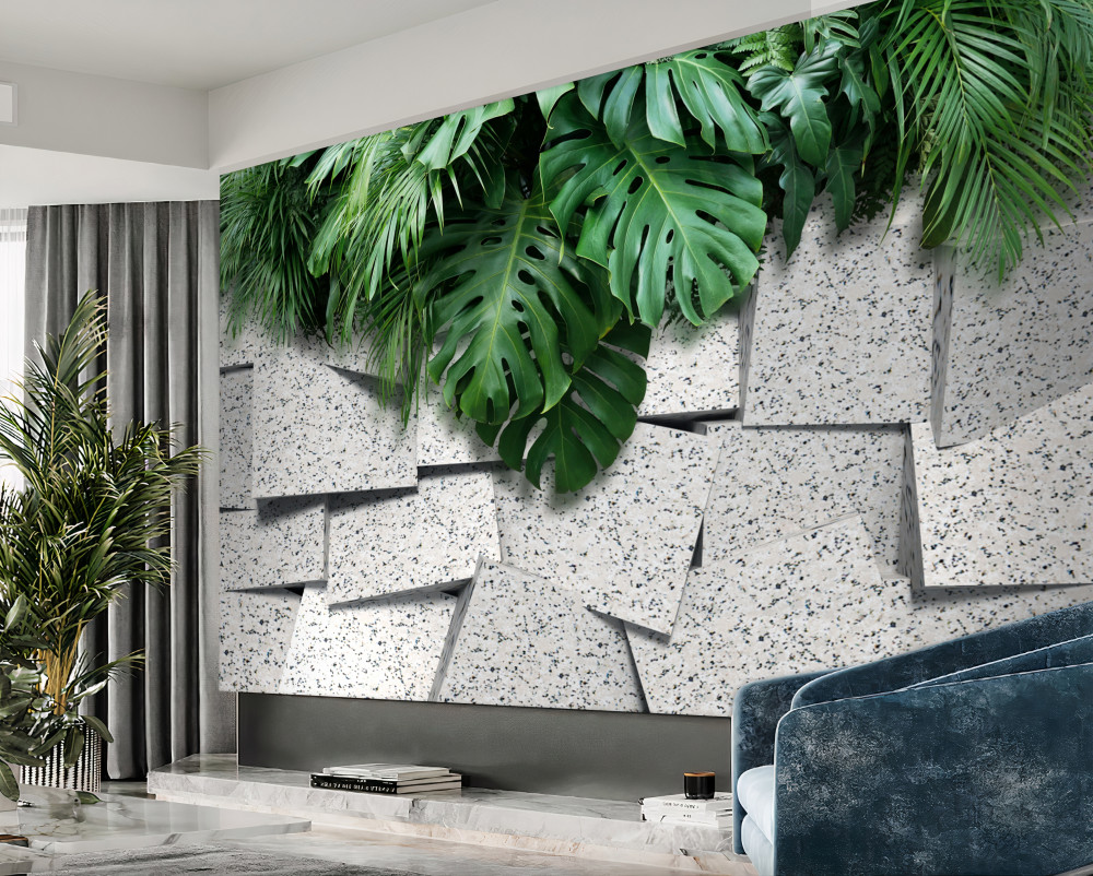 Fotomurales Monstera tropical sobre fondo gris (artículo a90289 ) de la categoría Fotomurales Hojas