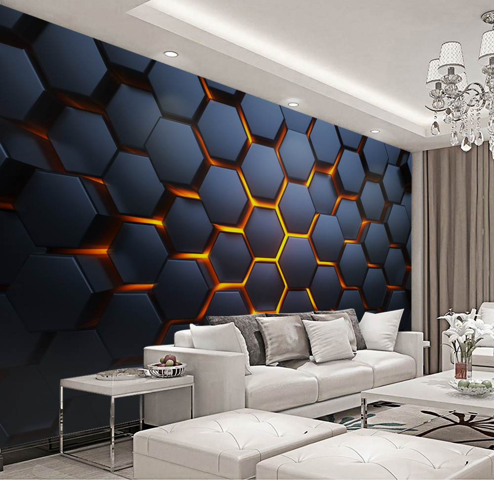 Fotomurales Muchos hexágonos con luz de fondo dorada (artículo a93115 ) de la categoría Fotomurales 3D