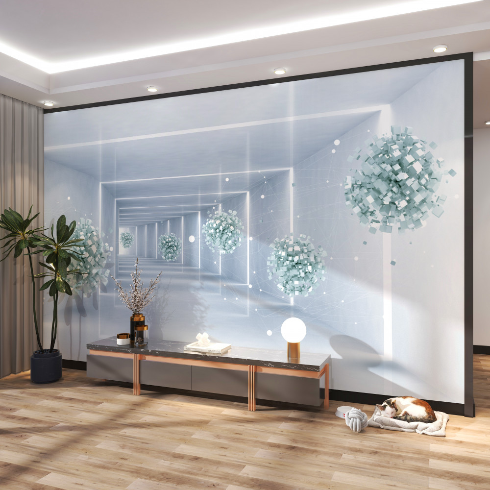 Fotomurales Perspectiva del túnel saliente y las bolas (artículo a91747 ) de la categoría Fotomurales Túnel 3d