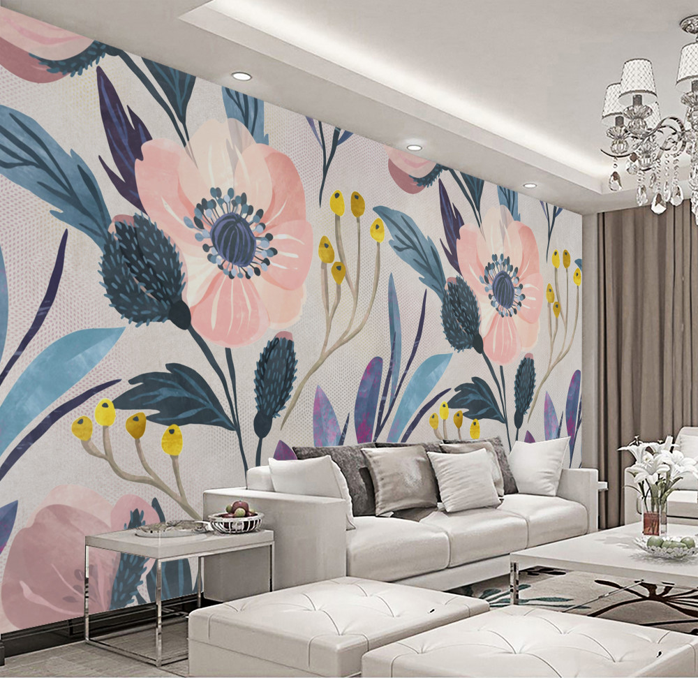 Fotomurales Poppies rosadas en hojas (artículo a93278 ) de la categoría Fotomurales Floral
