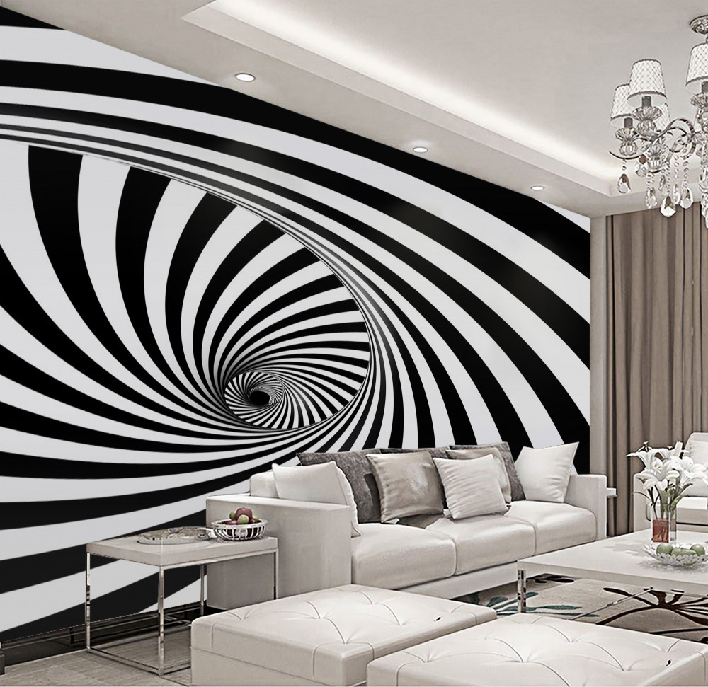 Fotomurales Rayas blancas y negras que entran en un vórtice (artículo a93993 ) de la categoría Fotomurales Abstracción