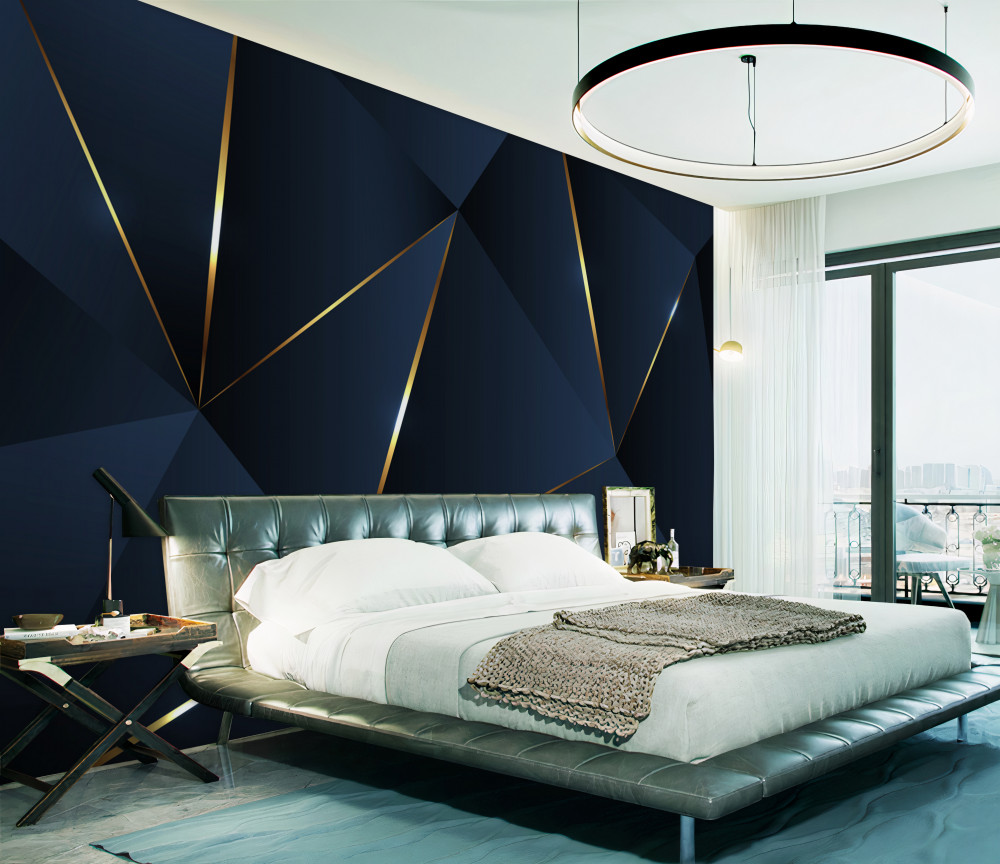 Fotomurales Triángulos azul oscuro con bordes dorados (artículo a93189 ) de la categoría Fotomurales 3D