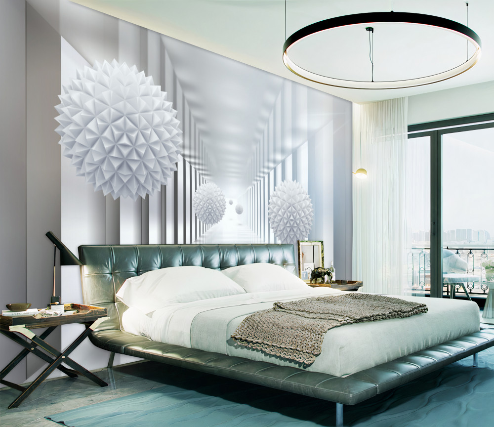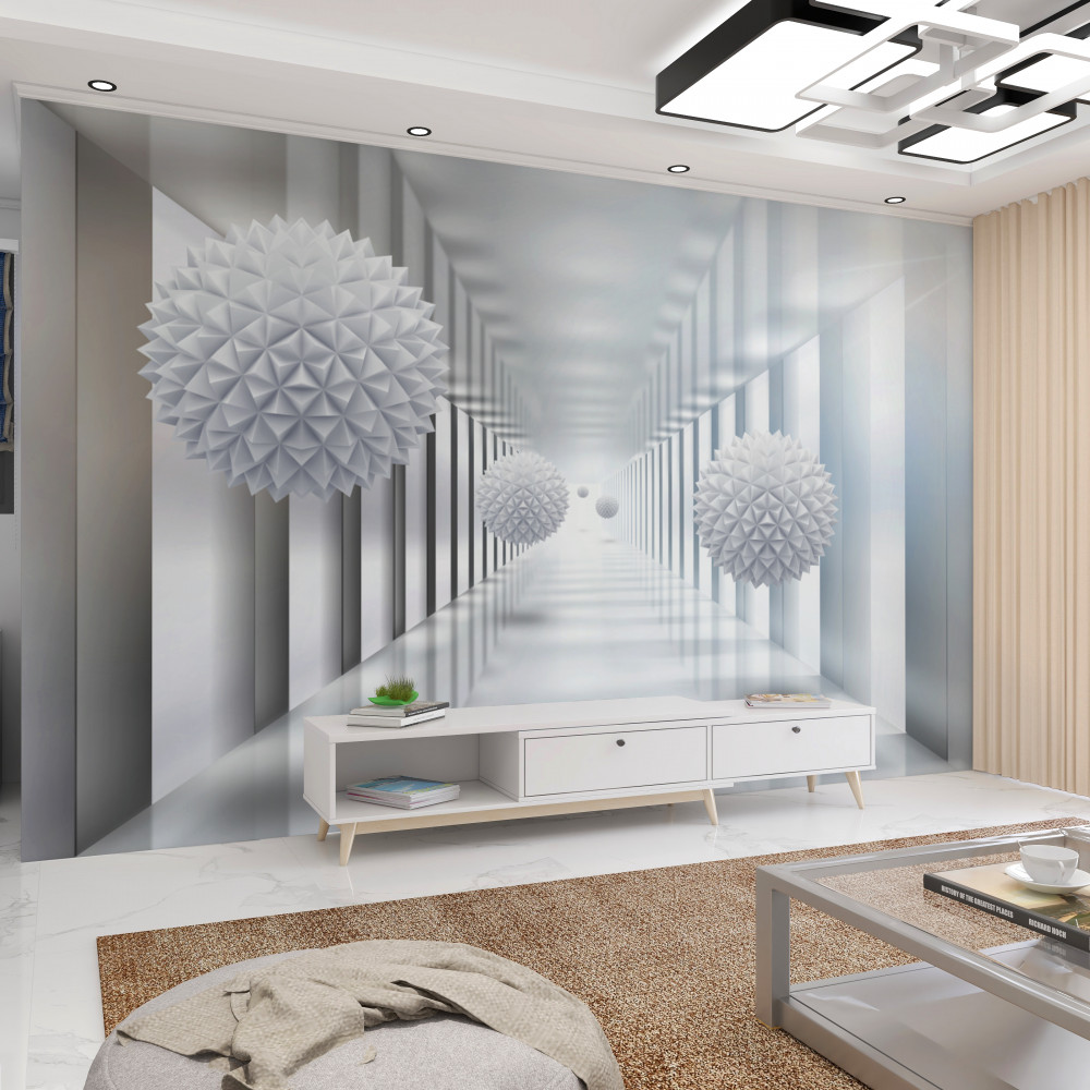 Fotomurales Túnel rectangular y bolas en perspectiva (artículo a91187 ) de la categoría Fotomurales Túnel 3d