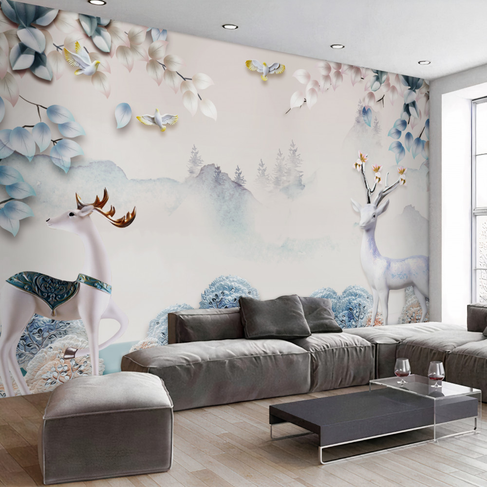 Fotomurales Las grúas salen de la casa sobre las montañas