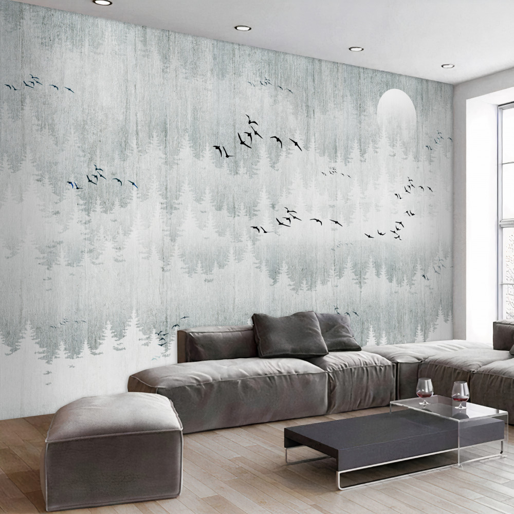 Fotomurales Los pájaros vuelan lejos del árbol en el viento