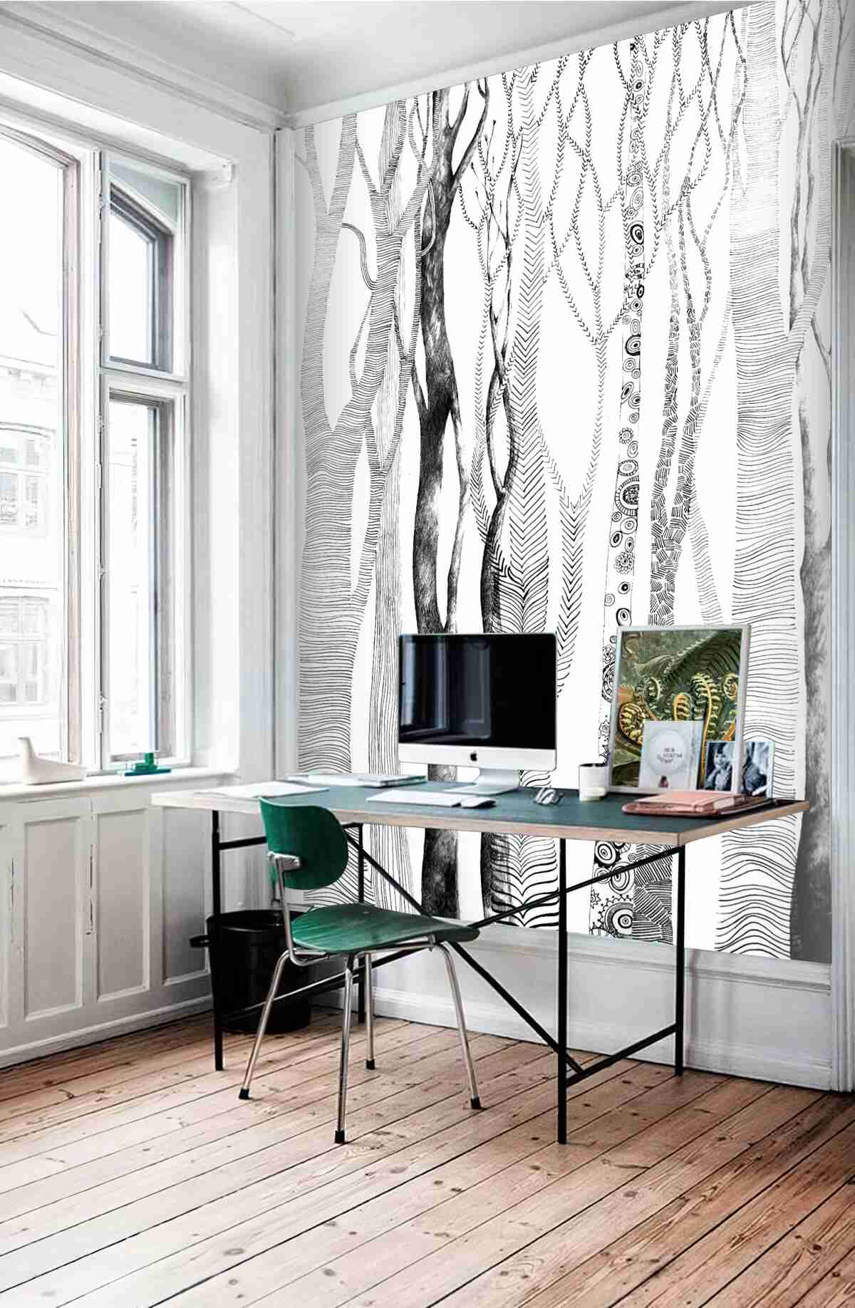 Fotomurales Árboles de otoño y llantas blancas con ámbar