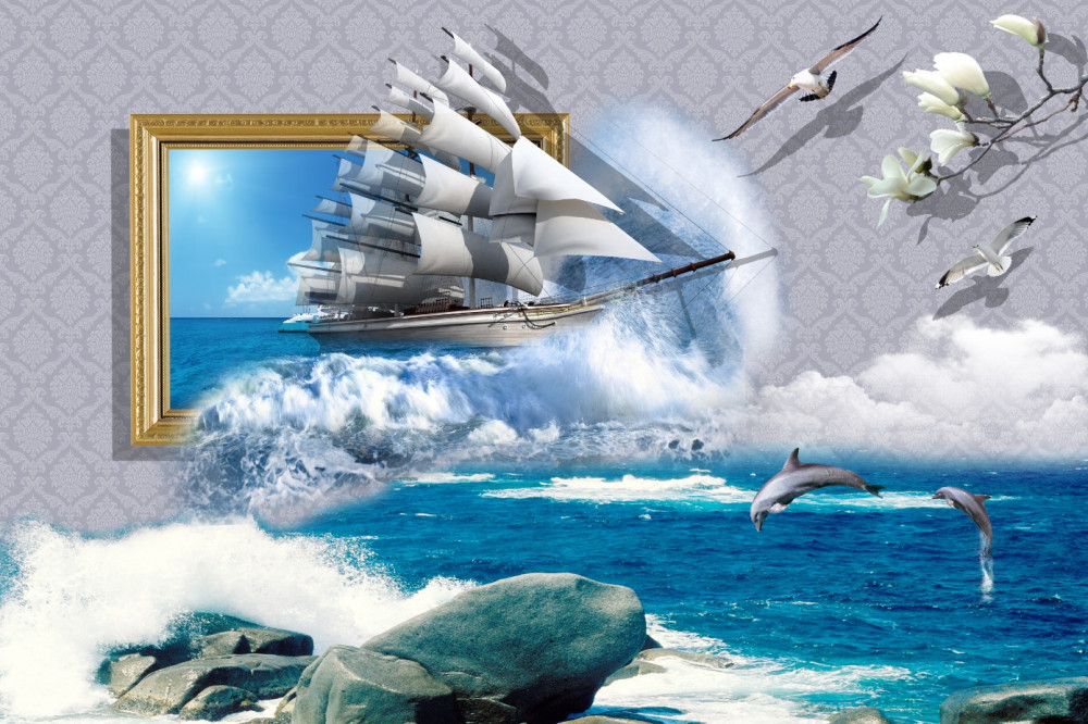 Fotomurales Tormenta de mar en una foto de un yate de navegación (artículo a92239 ) de la categoría Fotomurales Abstracción