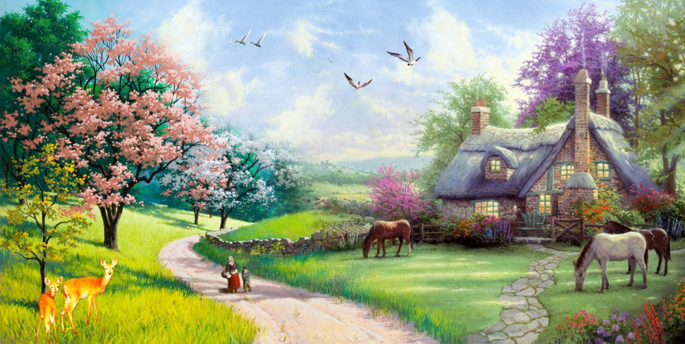 Fotomurales House acogedora en el bosque en verano (artículo a91802 ) de la categoría Fotomurales Acuarela