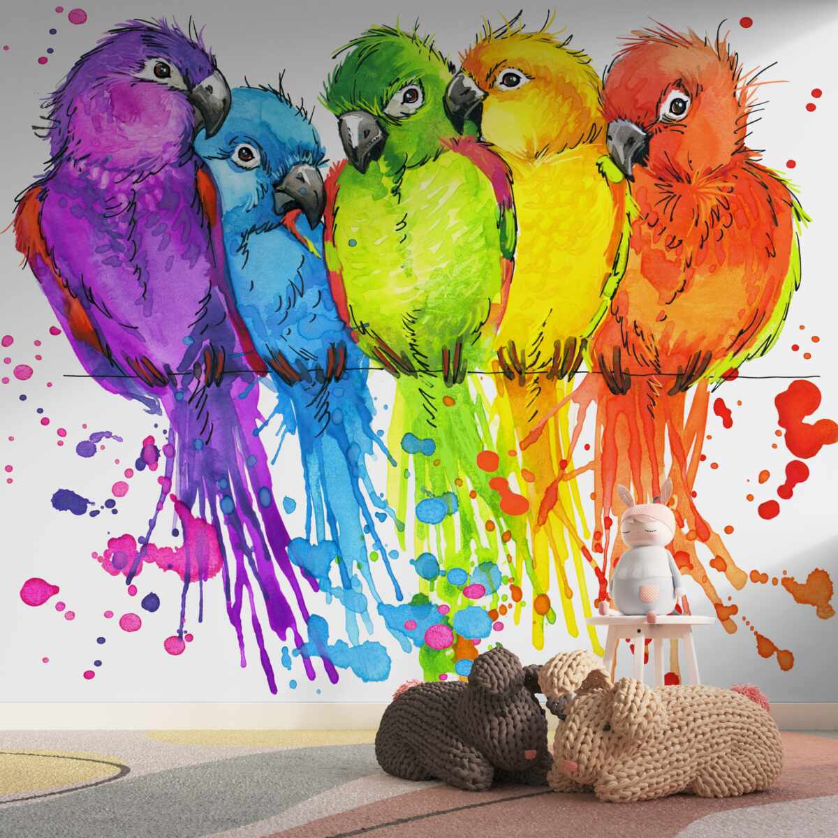 Fotomurales Loros multicolores (artículo a96721 ) de la categoría Fotomurales Acuarela