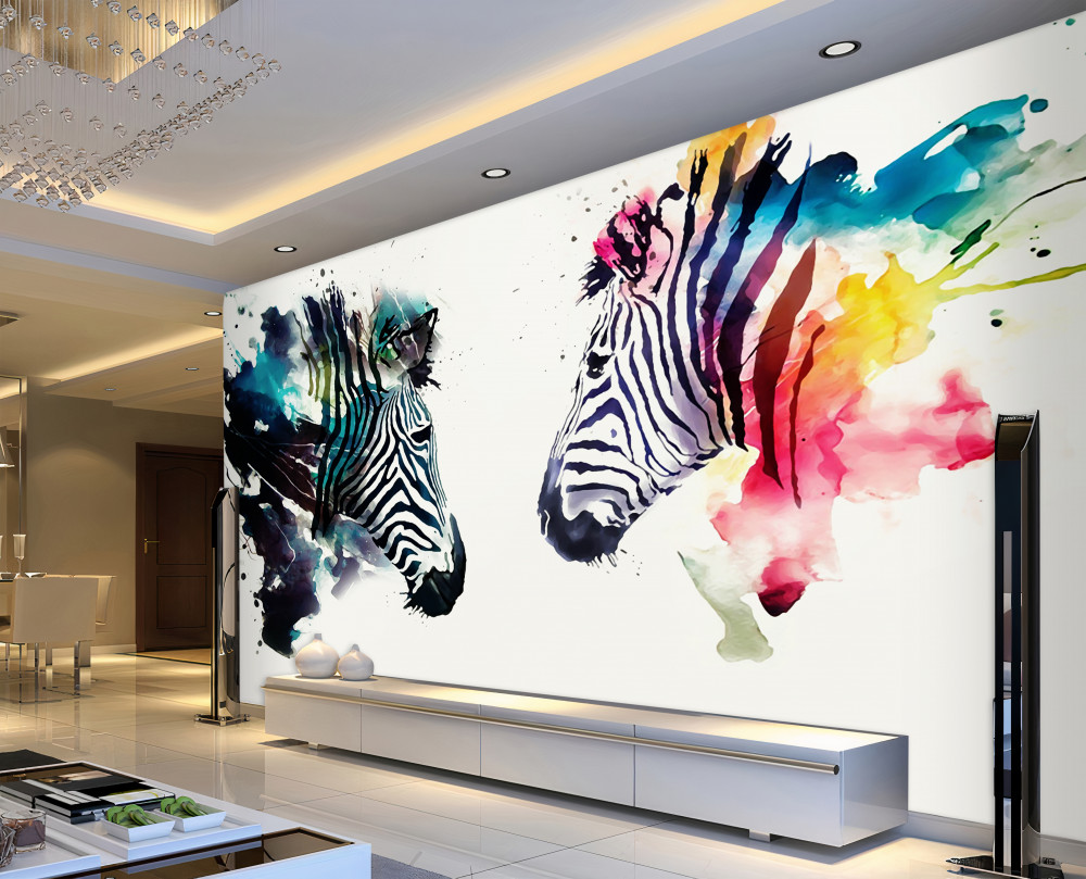 Fotomurales Dos cebras con pintura abstracta (artículo a91662 ) de la categoría Fotomurales Animales