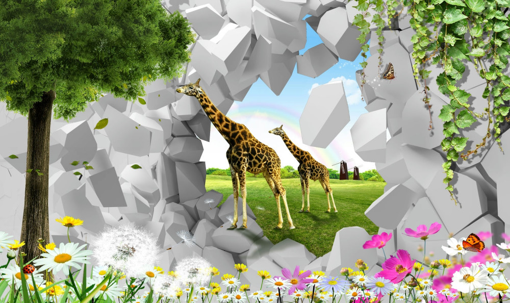 Fotomurales Jirafa en la naturaleza llegar a un árbol (artículo a89364 ) de la categoría Fotomurales Animales