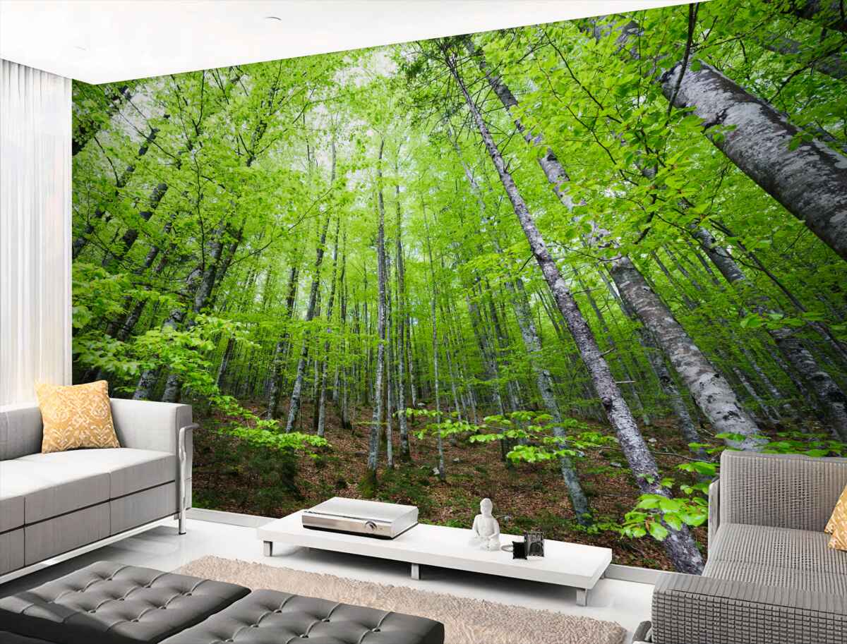 Fotomurales Corona de bosque verde brillante (artículo a98364 ) de la categoría Fotomurales Bosque