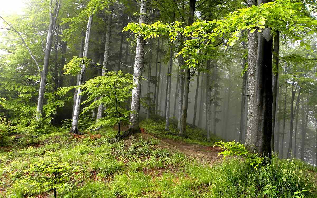 Fotomurales Decidua bosque nebuloso (artículo a98296 ) de la categoría Fotomurales Bosque
