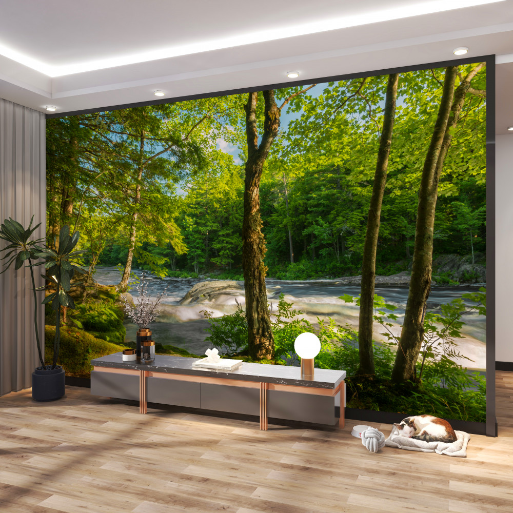 Fotomurales El sol brillante cruza los márgenes ficticios del bosque