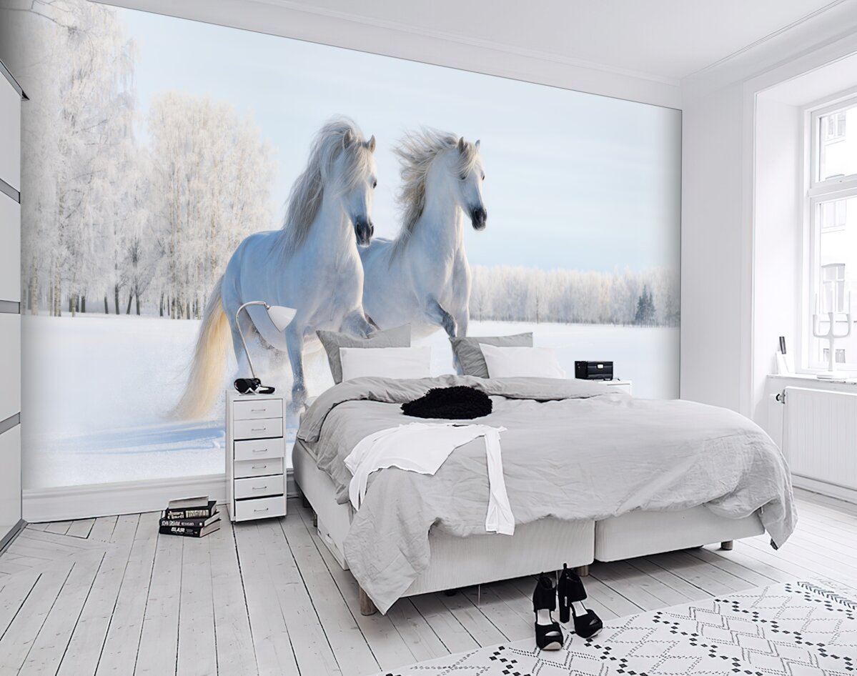 Fotomurales Dos caballos blancos corren sobre la arena blanca