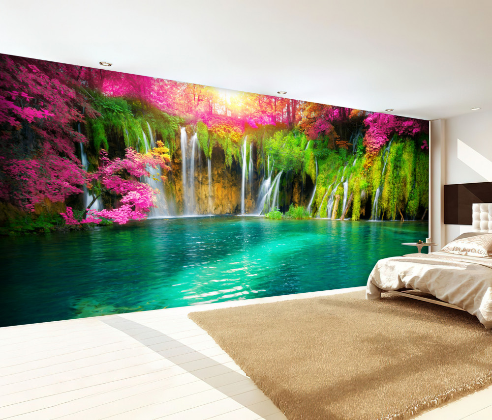 Fotomurales naturaleza fabulosa alrededor de la cascada y el lago