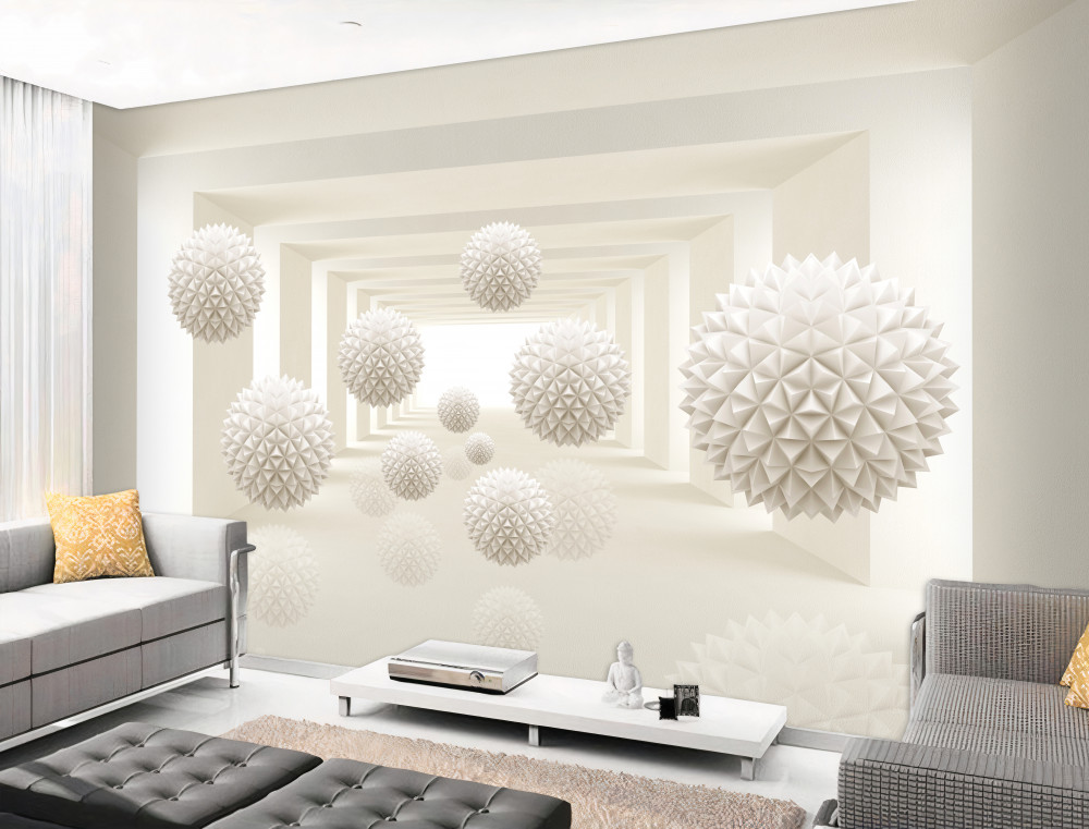 Fotomurales Bolas blancas y afiladas en una habitación brillante