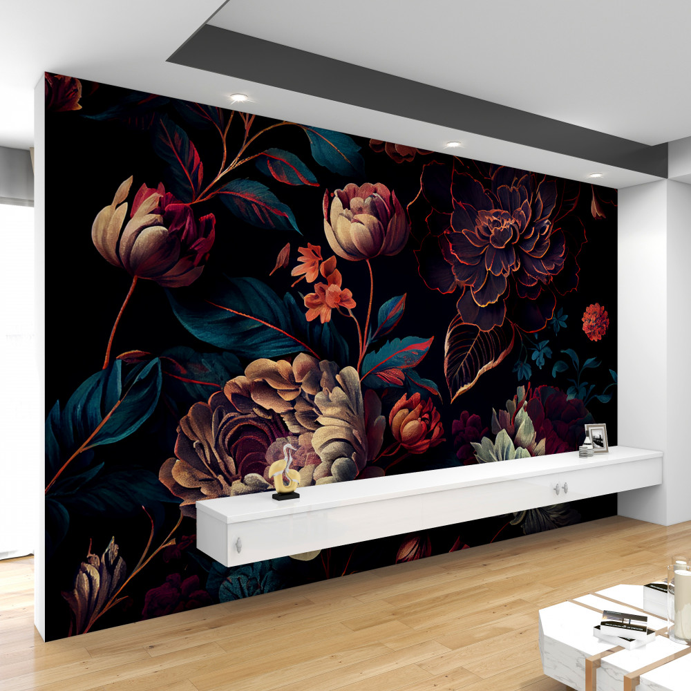 Fotomurales Bouquet de otoño en estilo vintage sobre fondo negro