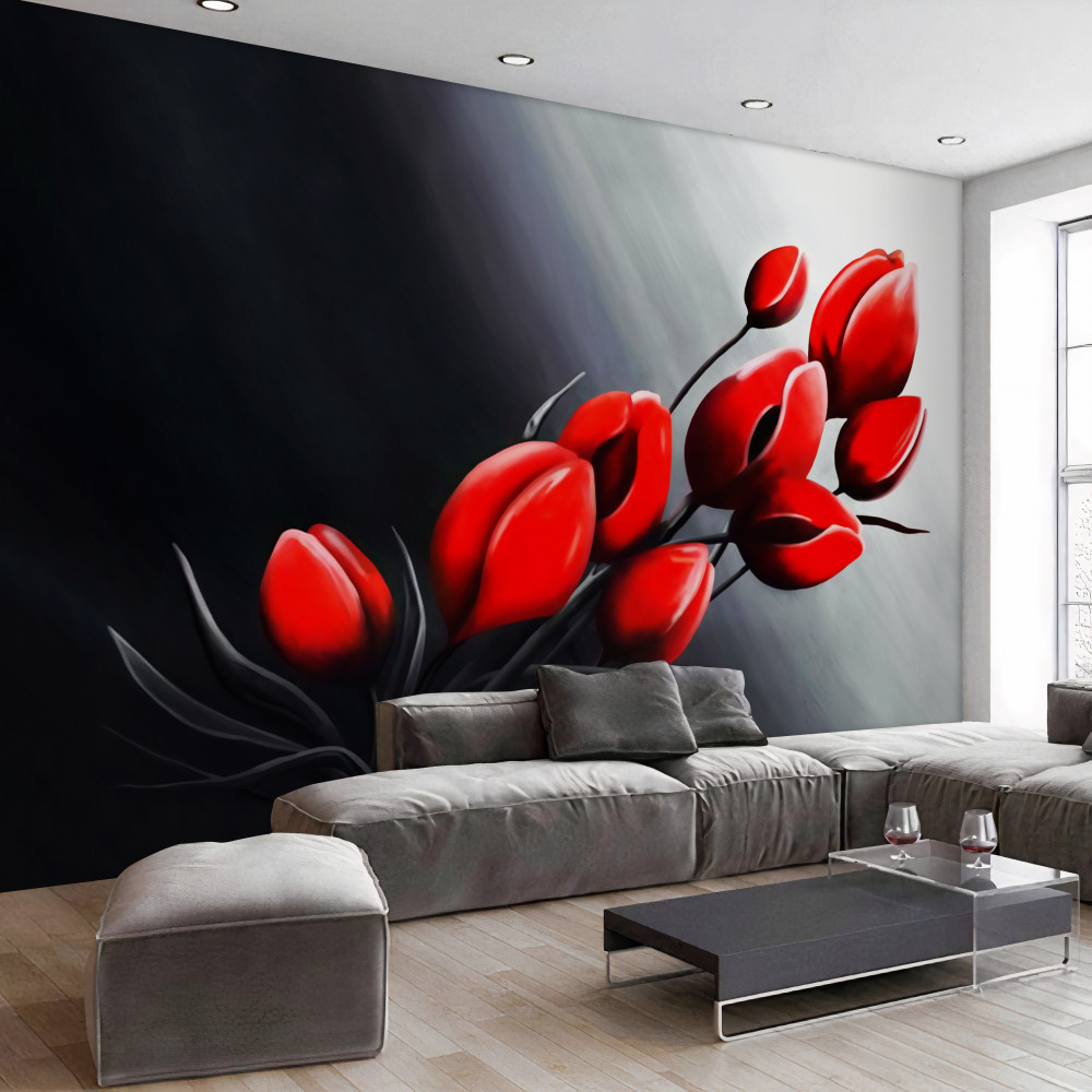 Fotomurales Bouquet rojo sobre fondo blanco y negro