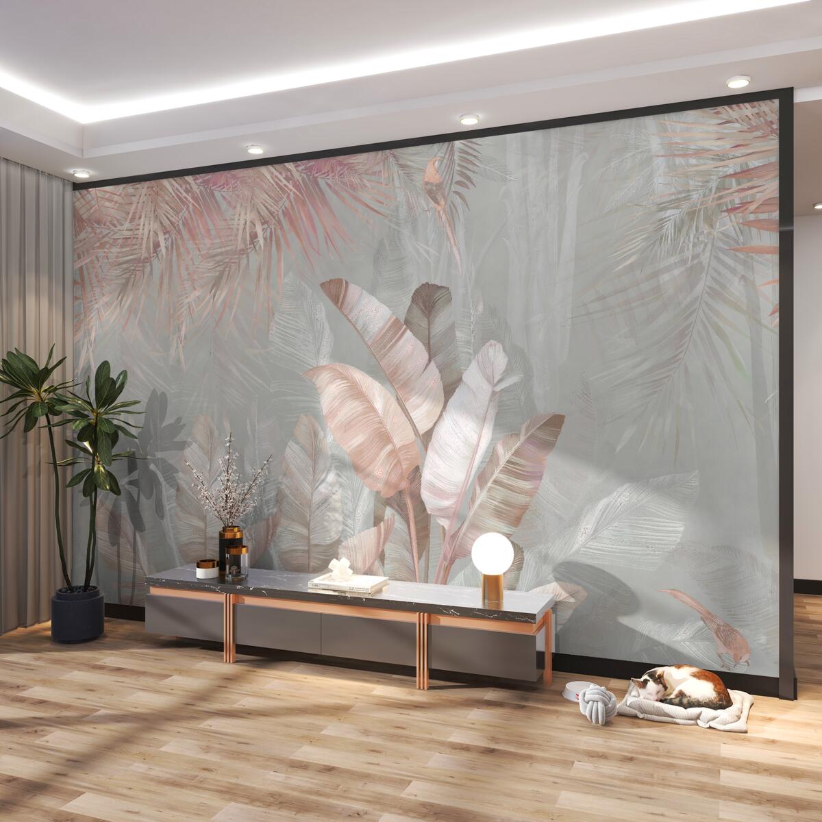 Fotomurales Hojas de palma y monstruo bajo la lluvia