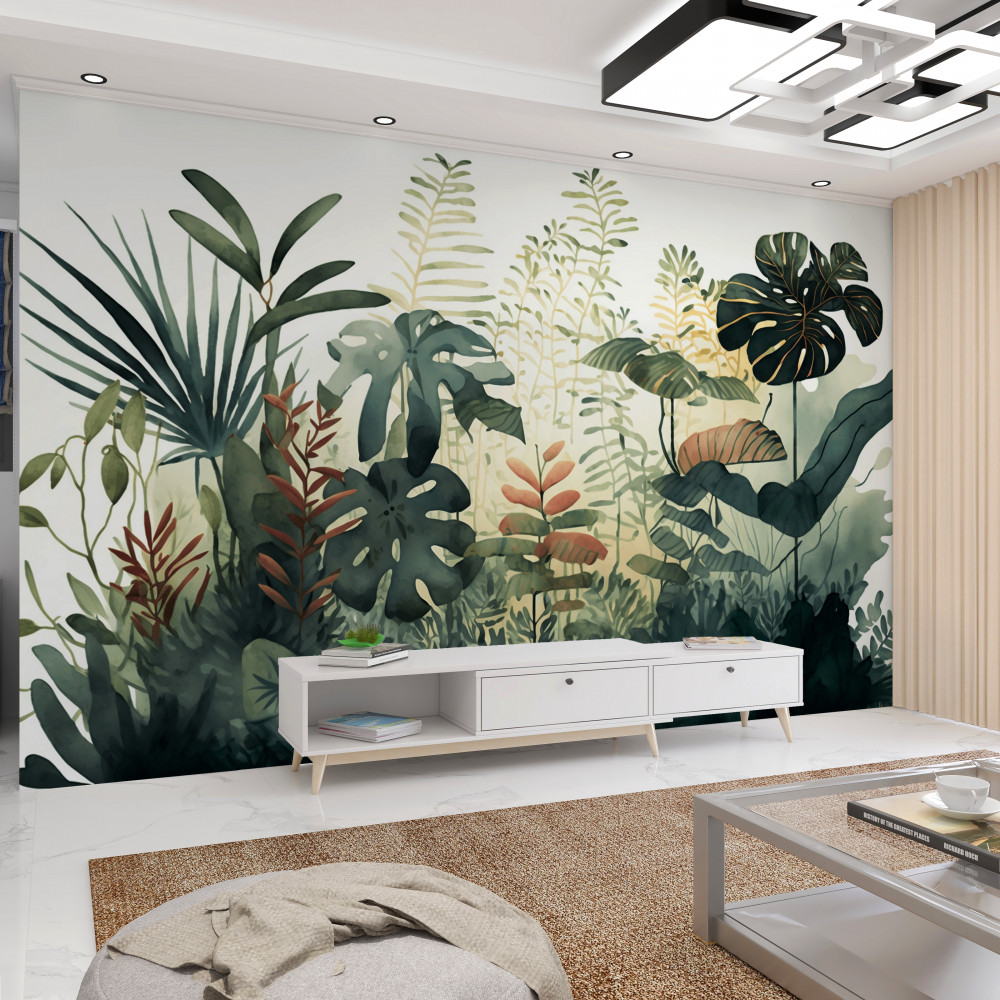Fotomurales Imprima la acuarela de la vegetación de la jungla
