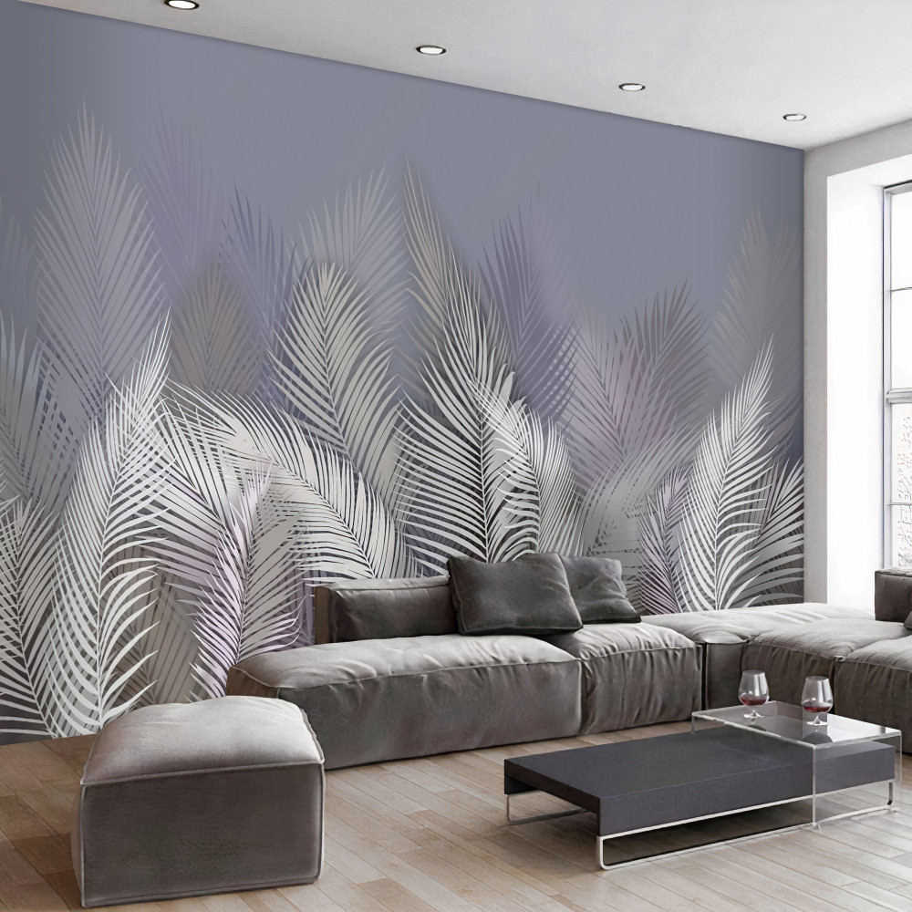 Fotomurales Grandes hojas tropicales sobre un fondo gris