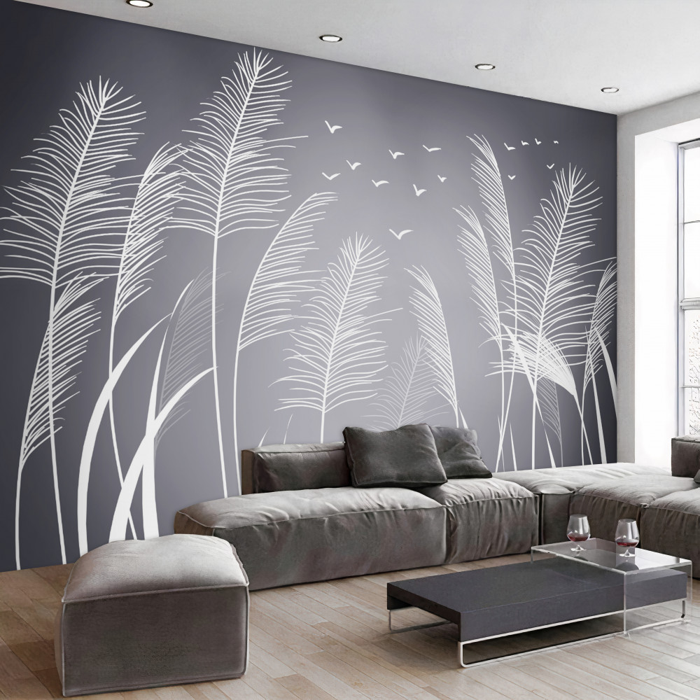 Fotomurales Felce y Monstera hojas sobre un fondo ligero