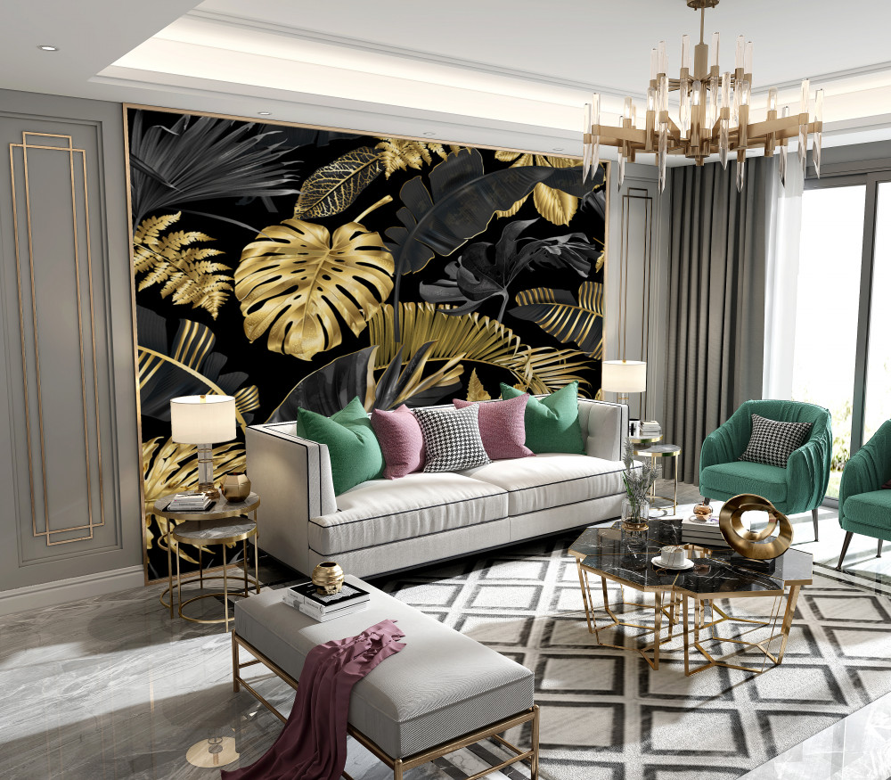 Fotomurales Hojas de helecho dorado sobre fondo marrón