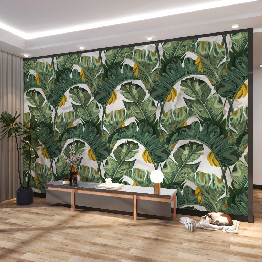 Fotomurales Hojas tropicales marrones claras en la niebla
