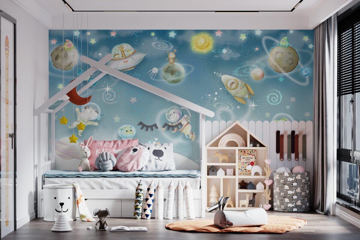 Fotomurales Los animales exploran el espacio (artículo a98213 ) de la categoría Fotomurales Infantiles