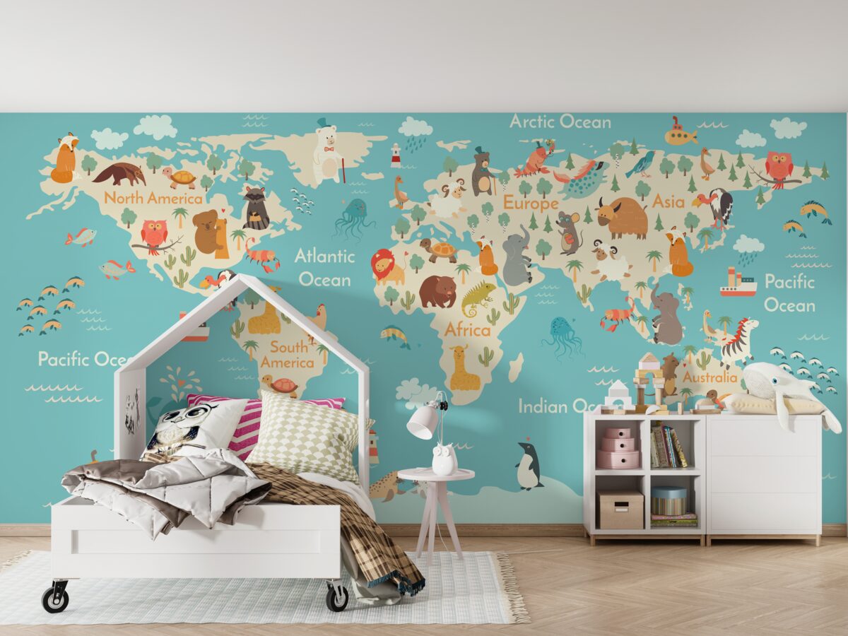 Fotomurales Mapa mundial con los animales principales (artículo a98039 ) de la categoría Fotomurales Infantiles