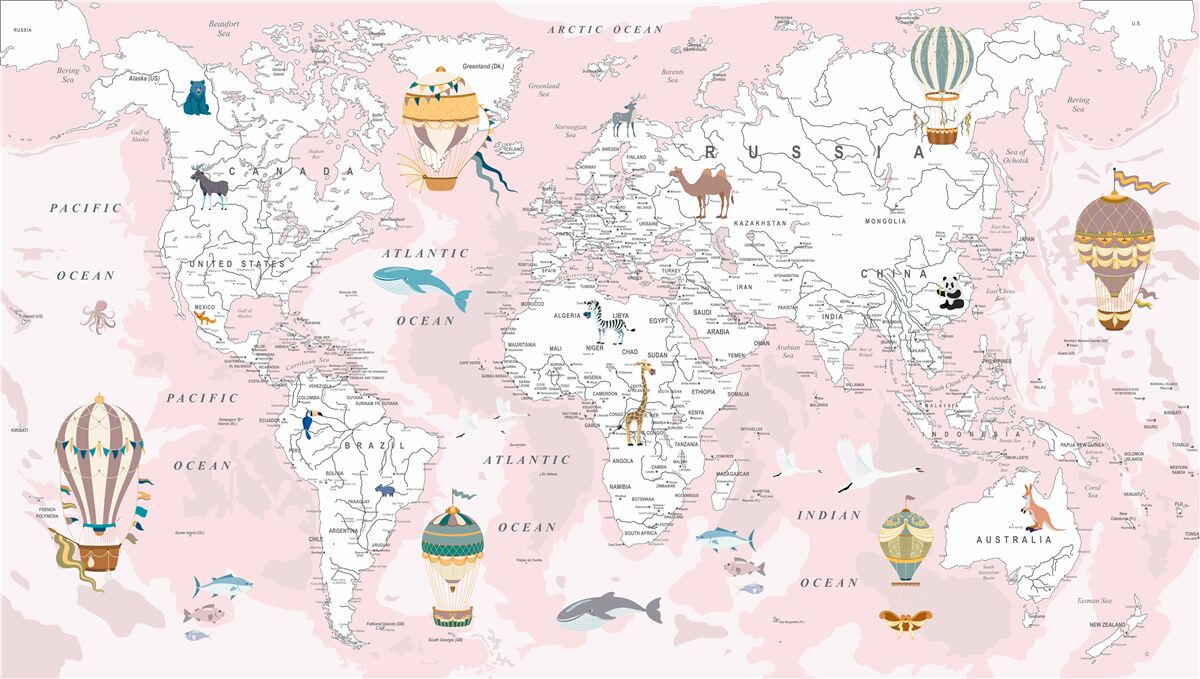 Fotomurales Mapa mundial en tonos rosas (artículo a98704 ) de la categoría Fotomurales Infantiles