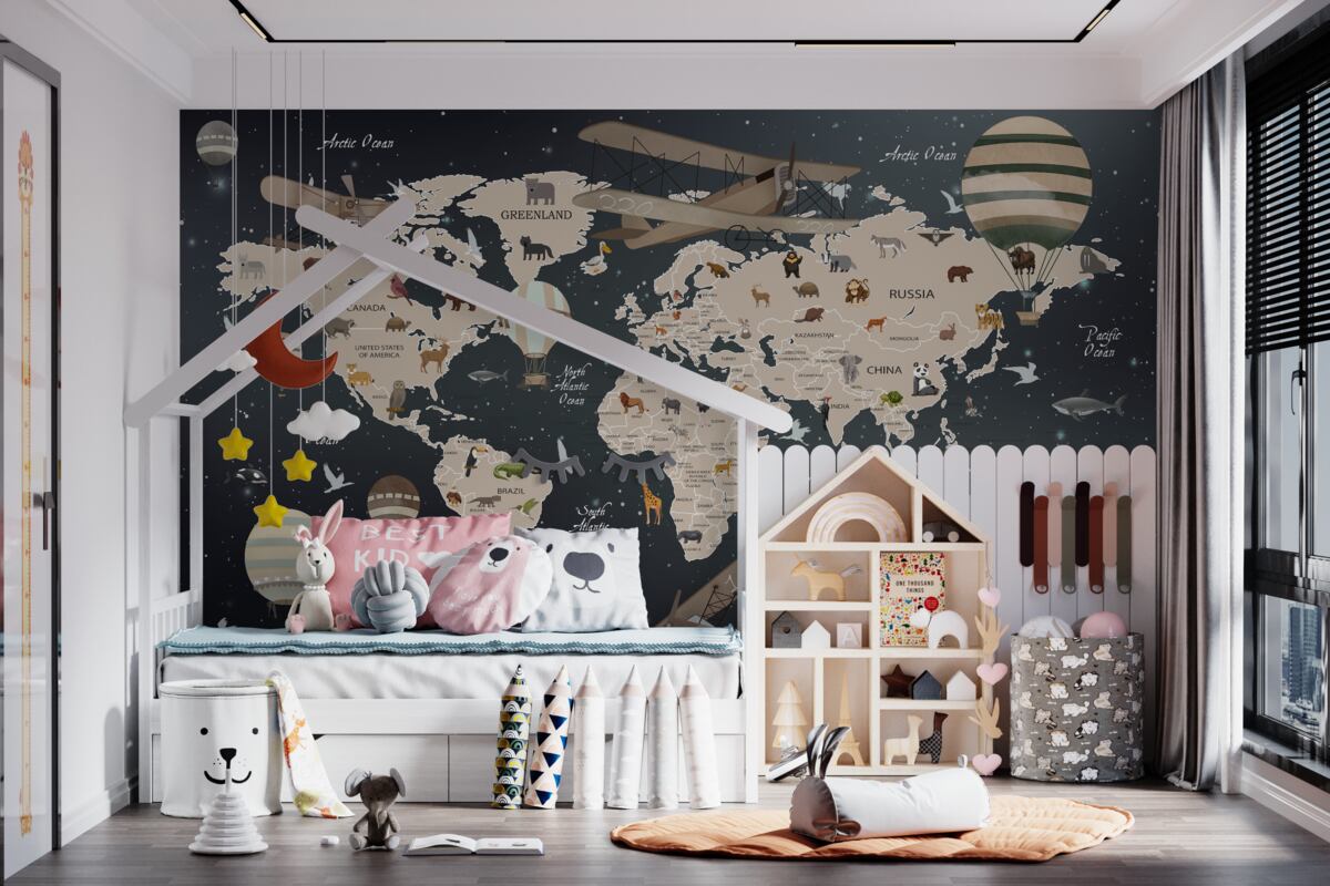 Fotomurales Mapa mundial sobre un fondo oscuro (artículo a98713 ) de la categoría Fotomurales Infantiles