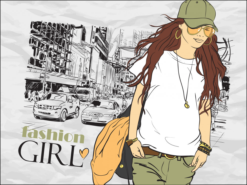 Fotomurales Chica de moda en el fondo de la ciudad (artículo a89964 ) de la categoría Fotomurales Juventud