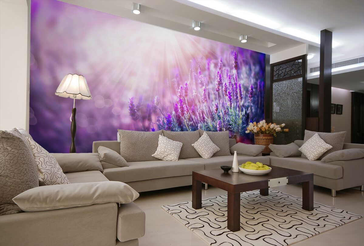 Fotomurales Rayos luminosos del sol sobre arbustos de lavanda