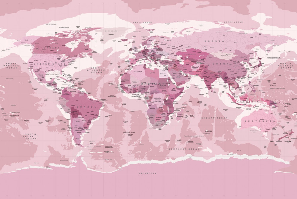 Fotomurales Mapa mundial regular en colores rosas (artículo a93973 ) de la categoría Fotomurales Mapas del mundo