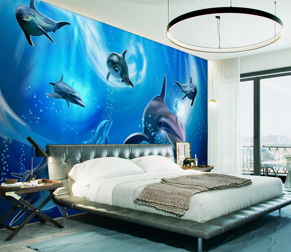 Fotomurales bonitos delfines en las profundidades del océano (artículo a91868 ) de la categoría Fotomurales Infantiles