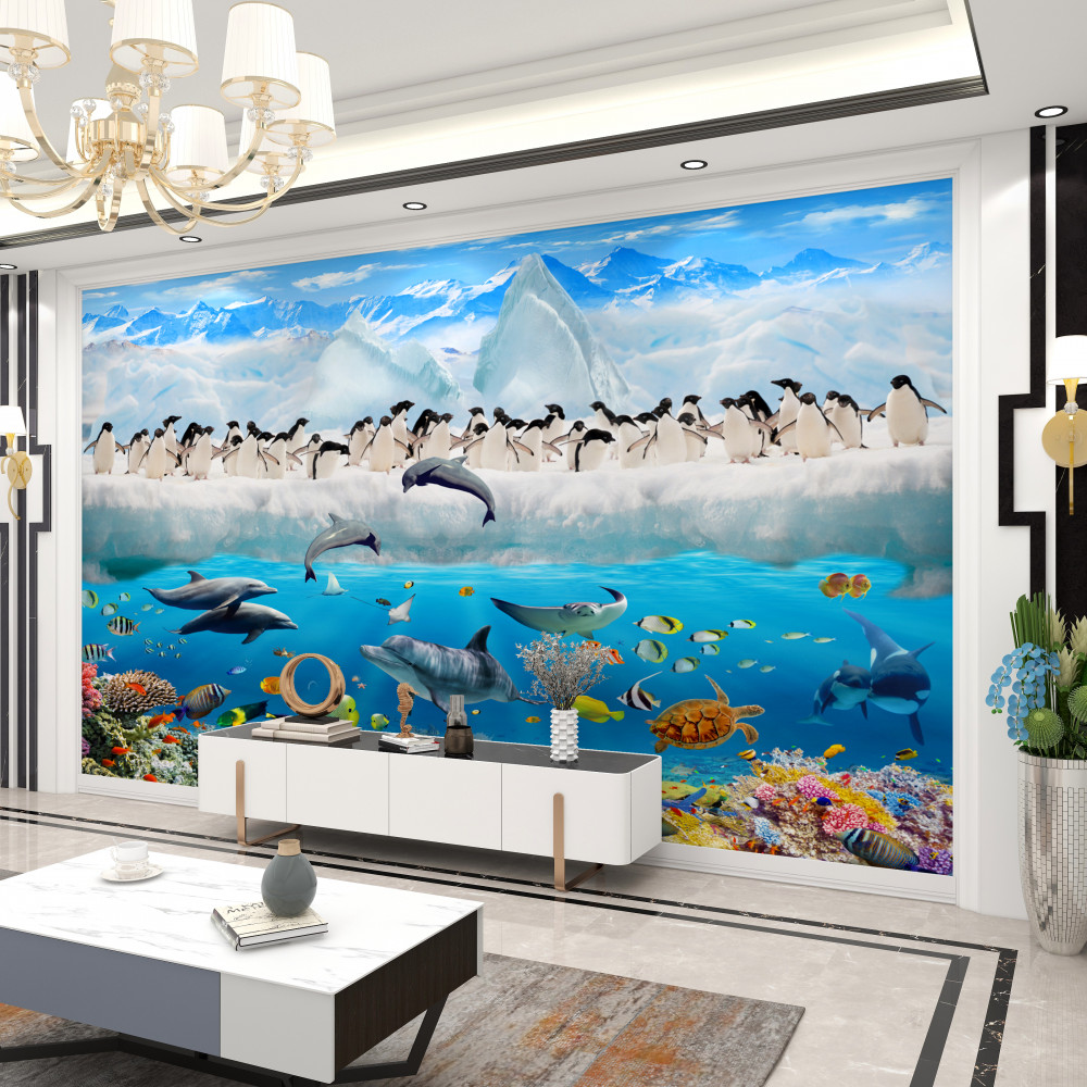 Fotomurales Pingüinos y delfines en arrecifes de coral (artículo a90421 ) de la categoría Fotomurales Infantiles
