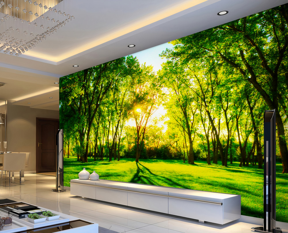 Fotomurales Colores vivaces del verde en el bosque de la mañana (artículo a90150 ) de la categoría Fotomurales Bosque