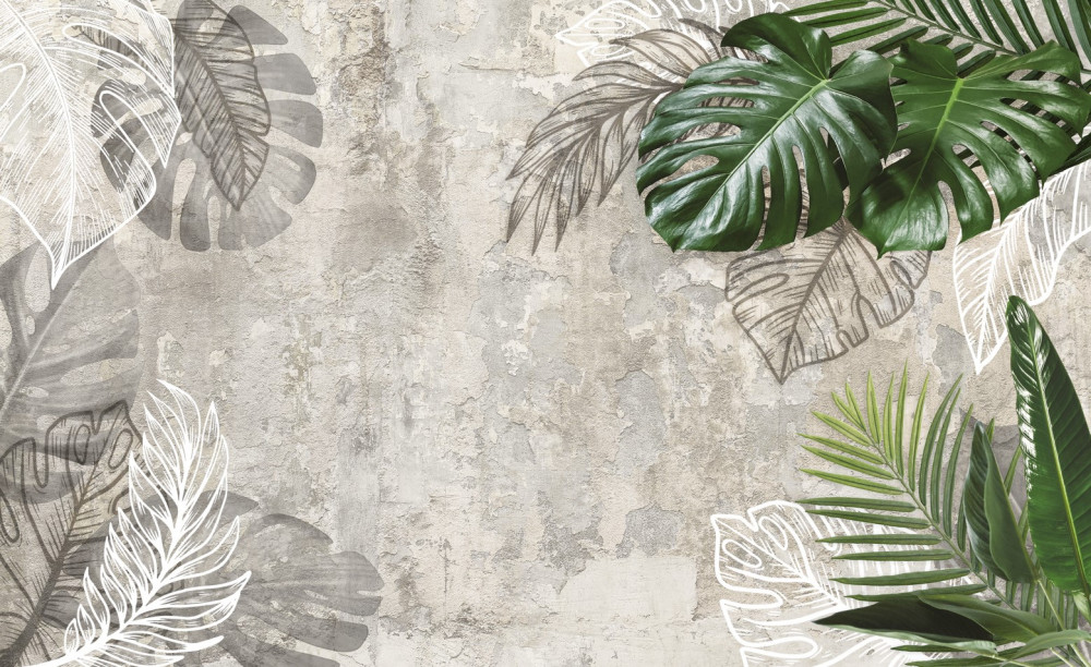 Fotomurales Impresiones de Monstera y Felci en acuarela (artículo a93424 ) de la categoría Fotomurales Hojas