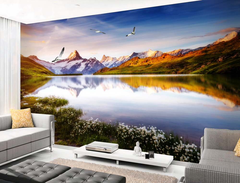 Fotomurales Paisaje de un río de montaña al atardecer (artículo a91784 ) de la categoría Fotomurales Montañas